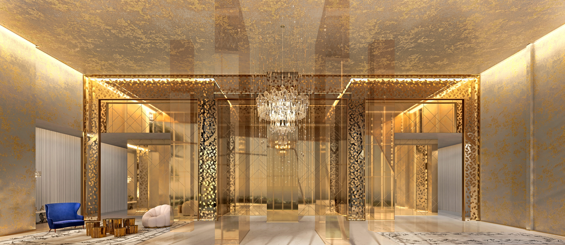 Com design assinado pelo renomado estúdio londrino Yoo, fundado por Philippe Starck, o projeto traz sofisticação e atenção aos detalhes em cada ambiente, desde o hall até as áreas comuns e residenciais.